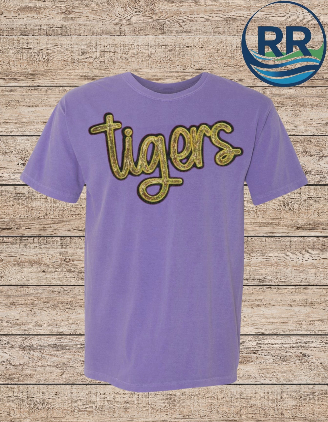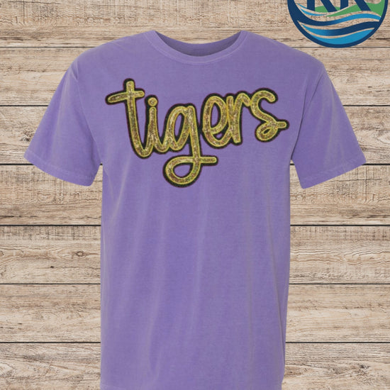 Tigers Gold Sequin Comfort Colors T-Shirt Lt Purple